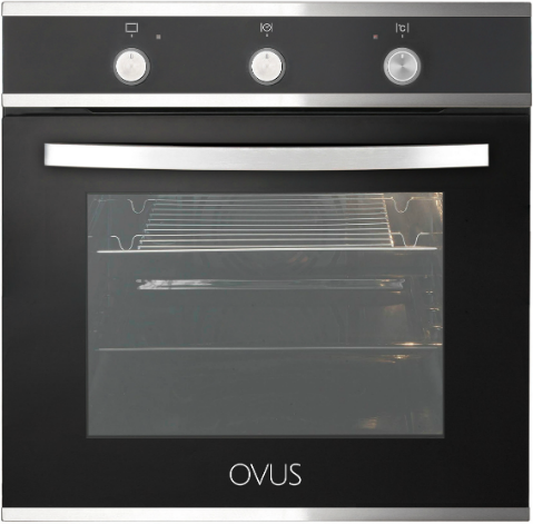 Ovus most basic oven choice with 10 intelligent cooking function, 3 layer glass door, Turbo fan, rotisserie function, Auto Cleaning. Manual Knob control